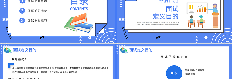 PART 02面試 前的準(zhǔn)備print the presentation and make it into a film to be used in a wider field The user can demonstrate on a projector or computer