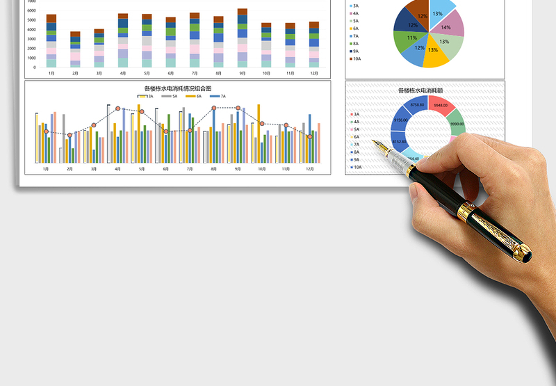 物業(yè)水電費總結(jié)報表(圖形圖表) Array