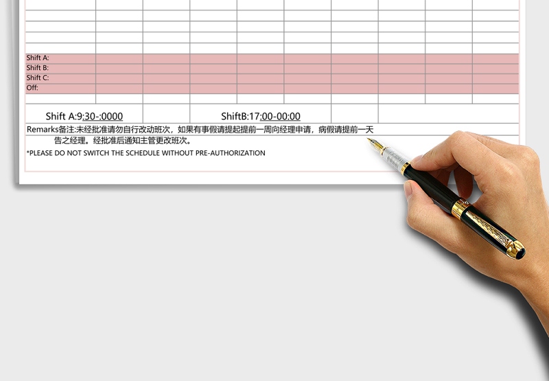 時(shí)尚紅色中英文每周部門排班表excel表格模板