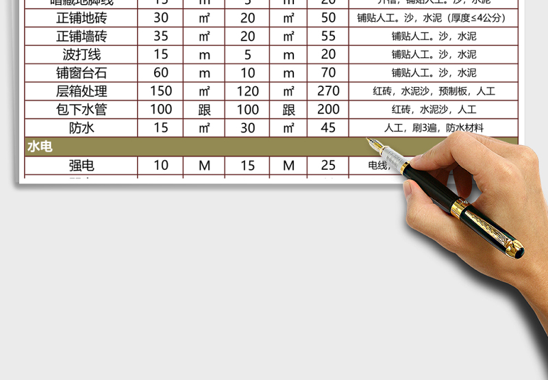 裝修人工及材料報(bào)價(jià)參考excel模板