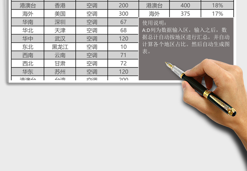銷售按地區(qū)占比統(tǒng)計圖表模版