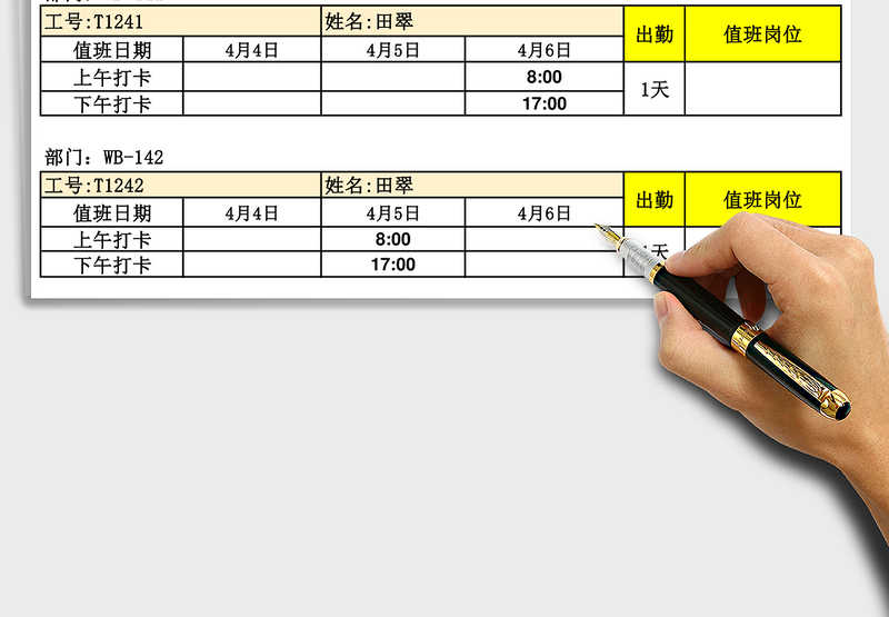 值班考勤打卡表 Array