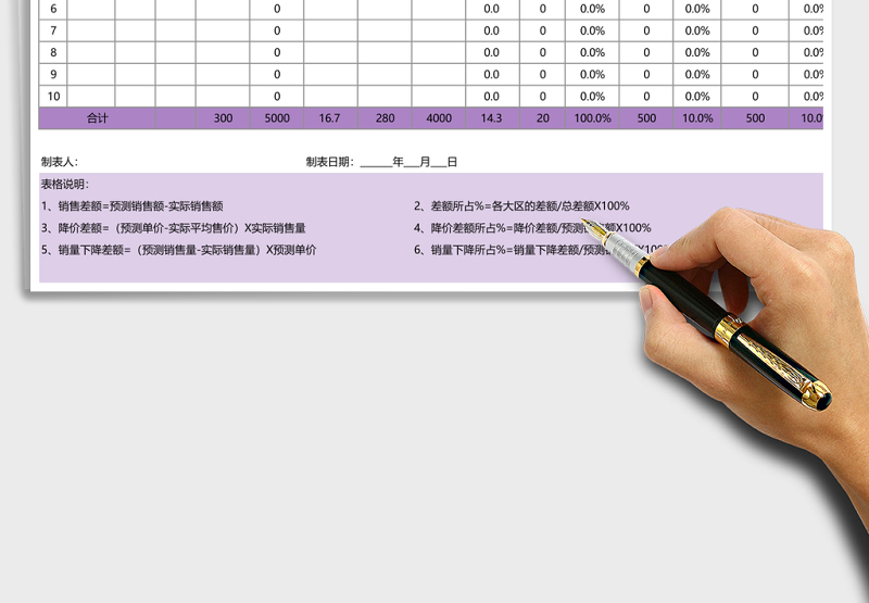 銷售價(jià)格和銷售數(shù)量分析表excel表格模板