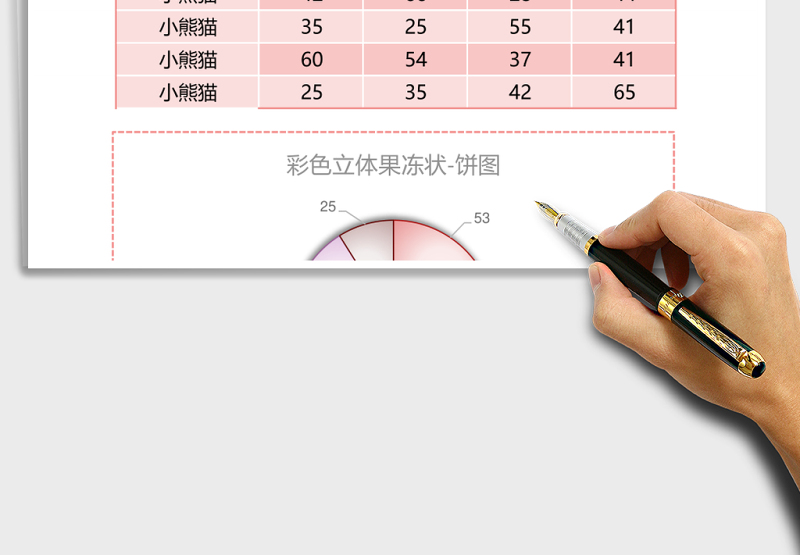 粉色霧面磨砂餅圖excel模板