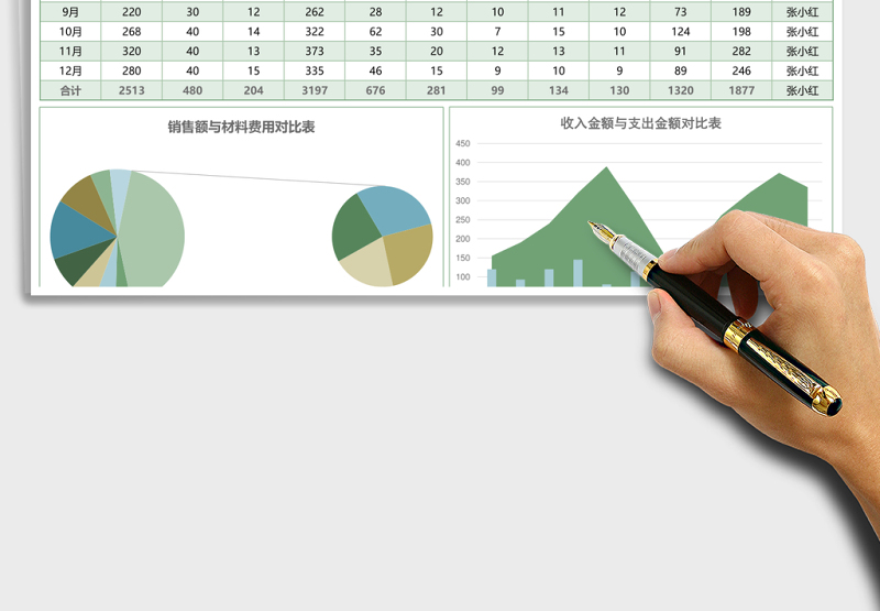 綠色簡約現(xiàn)金收支月報表Excel圖表模板