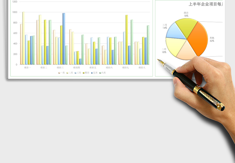 綠色上半年項(xiàng)目支出分析報(bào)表Excel模板