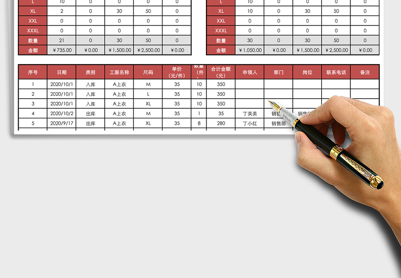 工裝工服庫(kù)存登記表 Array