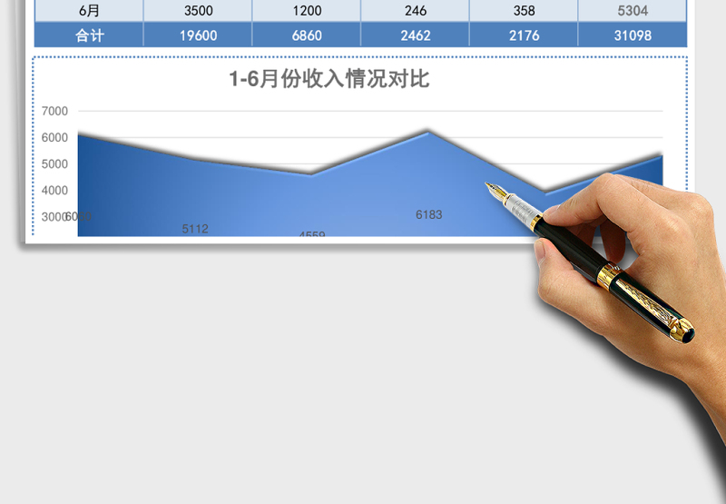藍(lán)色實(shí)用半年個人收入分析表excel模板