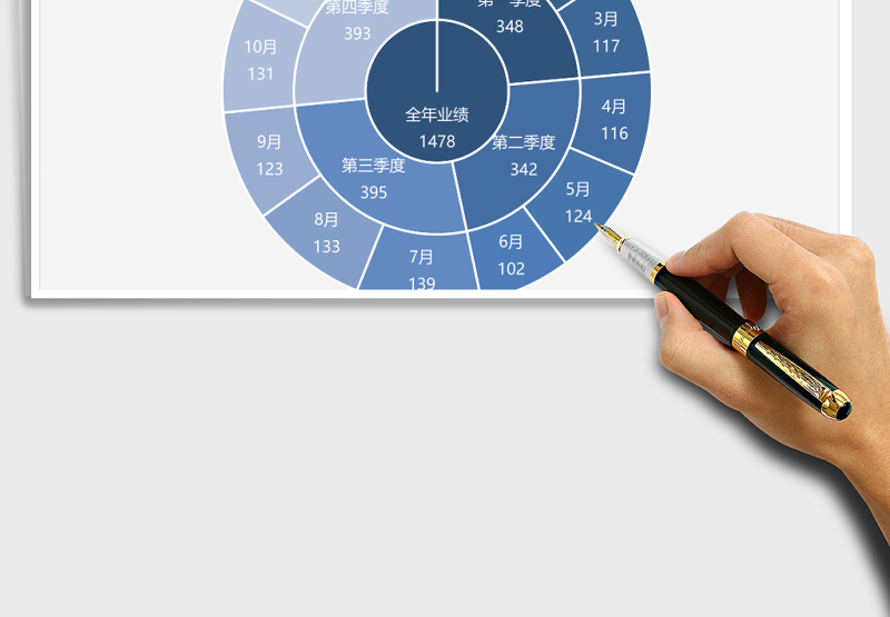 月度季度年度銷售業(yè)績數(shù)據(jù)占比環(huán)形圖excel