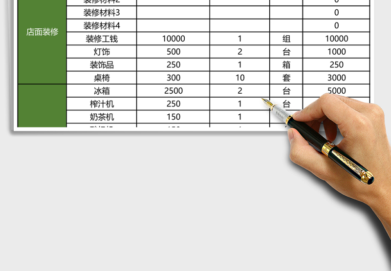 開(kāi)店所需預(yù)算明細(xì)表表格