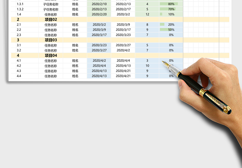 工作進度表(甘特圖)Excel模板Excel表格模板 Array