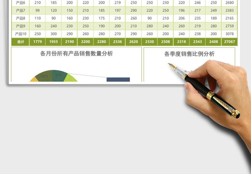 綠色紋理產(chǎn)品銷售情況分析excel模板