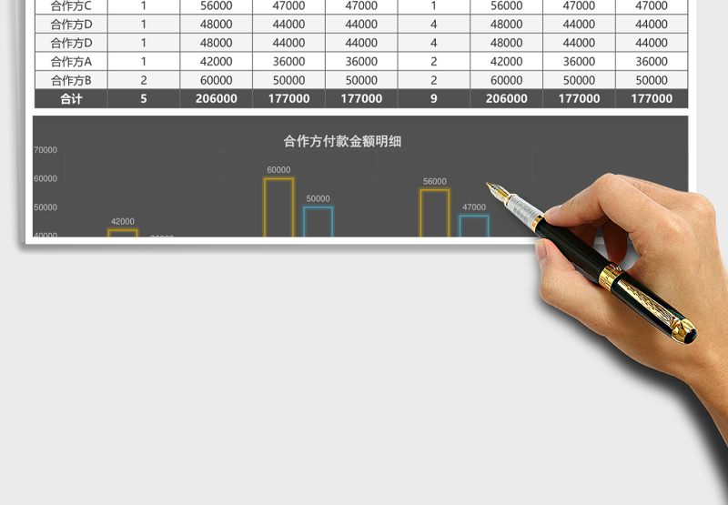 黑色采購發(fā)票和付款匯總表excel模板