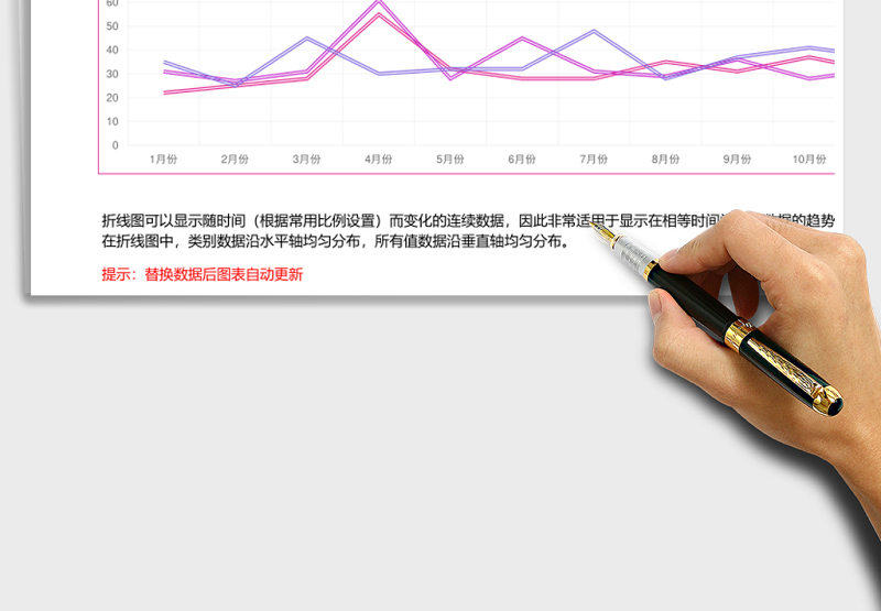 玫紅色鏤空折線圖excel模板