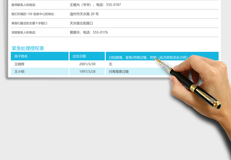 嬰兒緊急信息聯(lián)系表excel表格模板