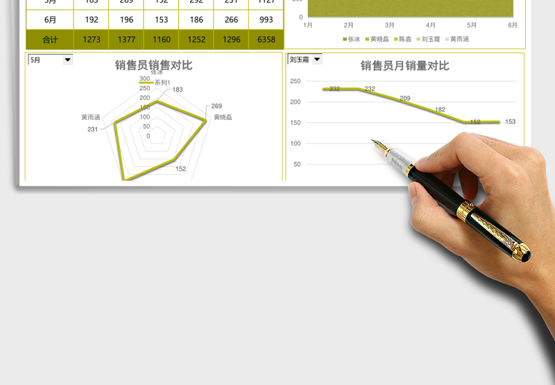 簡約半年銷售動態(tài)分析組合圖excel模板