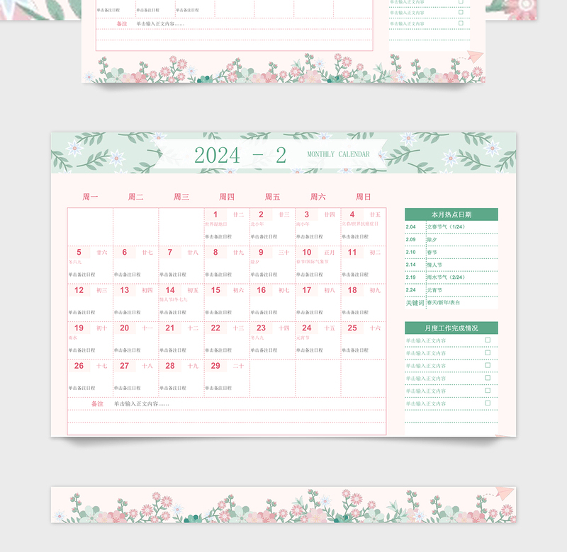 工圖網(wǎng)提供2024年?duì)I銷工作日歷清新綠碎花供會(huì)員免費(fèi)下載。更多精彩黨課PPT素材,盡在工圖網(wǎng)。