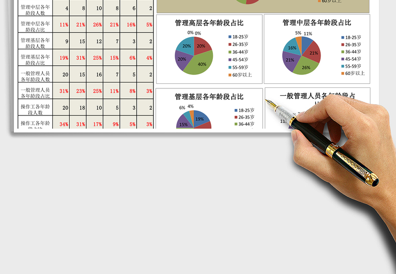 2021年人力資源年齡結(jié)構(gòu)分析圖表(職位維度)