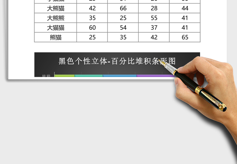 黑色炫彩百分比堆積條形圖excel模板