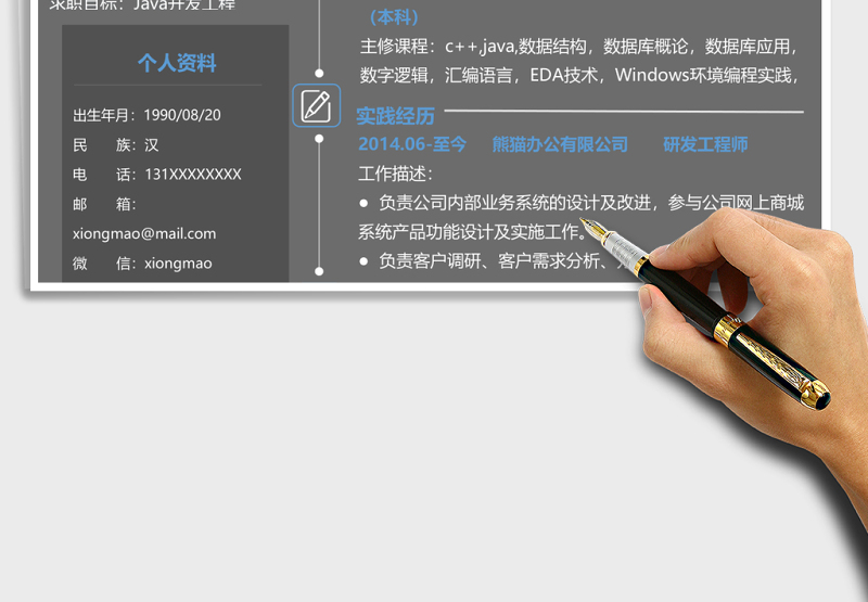 工圖網(wǎng)提供實(shí)用java開發(fā)工程師excel簡歷模板供會員免費(fèi)下載。更多精彩黨課PPT素材,盡在工圖網(wǎng)。