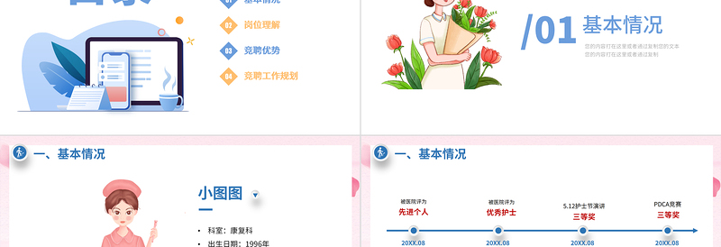 科室:康復(fù)科出生日期:1996年職稱:護師工作經(jīng)驗:8年入職時間:2020.06學(xué)歷:本科畢業(yè)學(xué)校:XXXXXXXXXX小圖圖一、基本情況越努力 · 越幸運