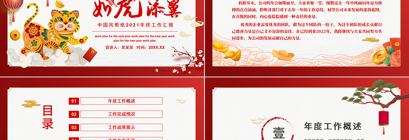 2022工作總結PPT虎年紅色中國風年終工作匯報述職報告新年工作計劃模板