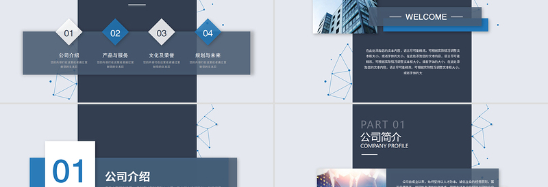 卡片式科技風藍色簡約大氣商務公司介紹項目推廣產(chǎn)品介紹ppt模板