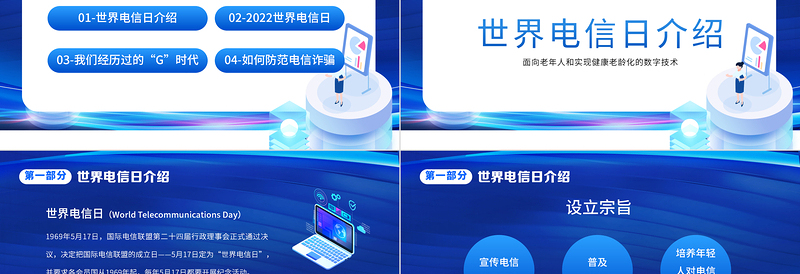 藍(lán)色大氣簡(jiǎn)約風(fēng)5.17國家電信日介紹PPT