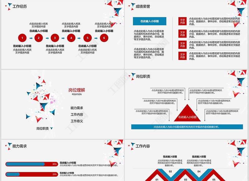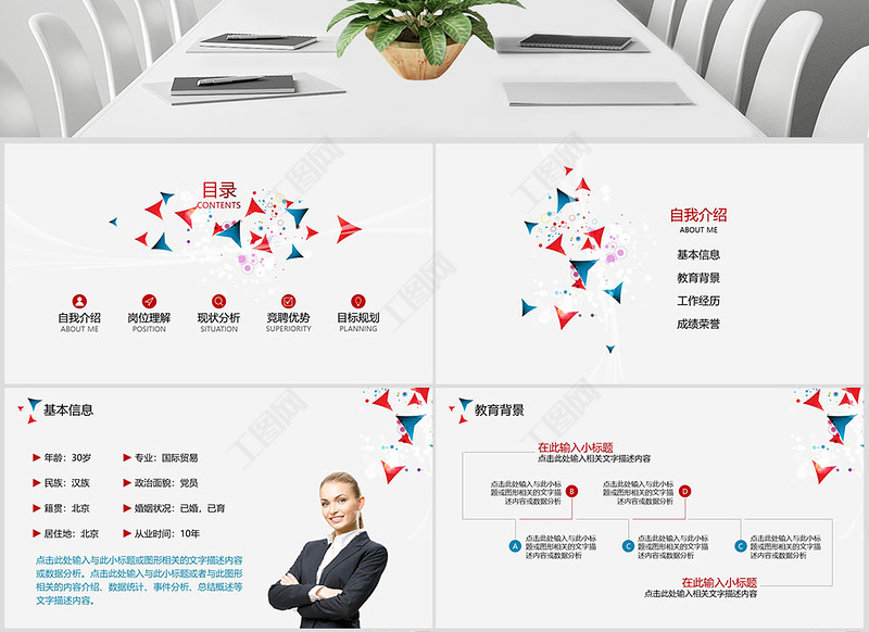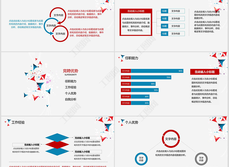工圖網提供紅藍簡約崗位競聘PPT模板供會員免費下載。更多精彩黨課PPT素材,盡在工圖網。
