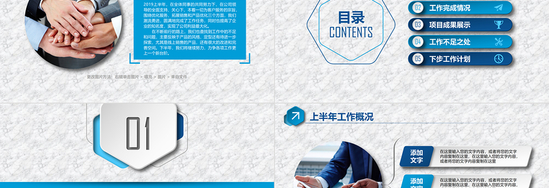 上半年工作概況添加 文字在這里輸入您的文字內容,或者將您的文字內容復制在這里,在這里輸入您的文字內容,或者將您的文字內容復制在這里在這里輸入您的文字內容,或者將您的文字內容復制在這里,在這里輸入您的文字內容,或者將您的文字內容復制在這里添加 文字添加 文字在這里輸入您的文字內容,或者將您的文字內容復制在這里,在這里輸入您的文字內容,或者將您的文字內容復制在這里更改圖片方法:右鍵單擊圖片 > 填充 > 圖片 > 來自文件