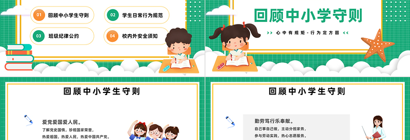 回顧中小學(xué)生守則愛黨愛國愛人民。 了解黨史國情,珍視國家榮譽(yù), 熱愛祖國,熱愛人民,熱愛中國共產(chǎn)黨。好學(xué)多問肯鉆研。 上課專心聽講,積極發(fā)表見解, 樂于科學(xué)探索,養(yǎng)成閱讀習(xí)慣。