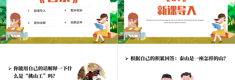 人教部編版四年級下冊語文PPT課件《挑山工》匯報人:辦圖網(wǎng) 時間:XXX辦圖網(wǎng)www.888ppt.com