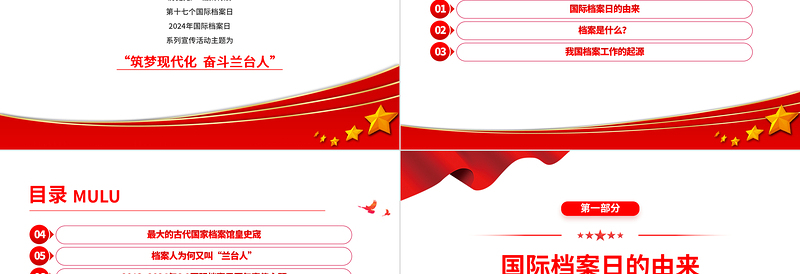 2024國際檔案日PPT精美大氣筑夢現(xiàn)代化奮斗蘭臺人主題課件 Array
