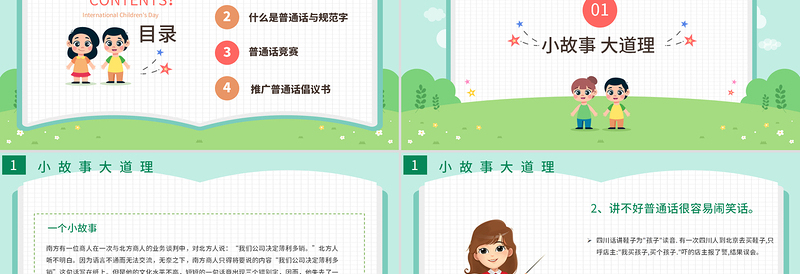 2021推廣普通話寫(xiě)好規(guī)范字PPT卡通可愛(ài)九月普通話推廣宣傳周主題班會(huì)課件模板下載