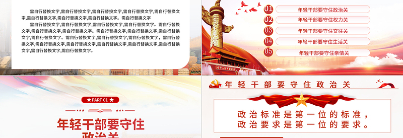 建功立業(yè)年輕干部要守好五道關(guān)PPT紅色黨政風(fēng)2022年機(jī)關(guān)干部從嚴(yán)治黨廉政專題黨課課件模板 Array
