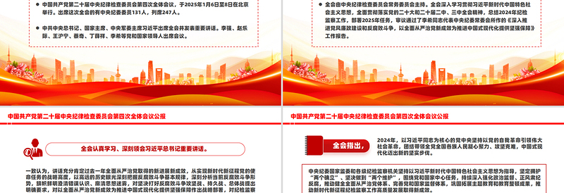 中國(guó)共產(chǎn)黨第二十屆中央紀(jì)律 檢查委員會(huì)第四次全體會(huì)議公報(bào)中國(guó)共產(chǎn)黨第二十屆中央紀(jì)律檢查委員會(huì)第四次全體會(huì)議,于2025年1月6日至8日在北京舉行。出席這次全會(huì)的有中央紀(jì)委委員131人,列席247人。