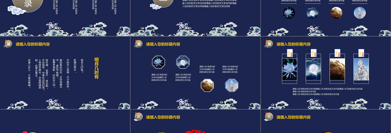 深色國(guó)風(fēng)秋意海洋高端奢華PPT模板 Array