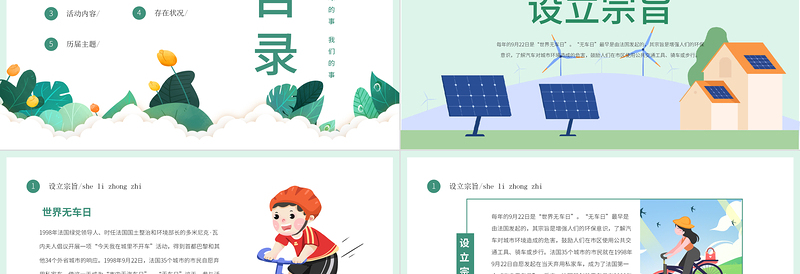 2022世界無車日PPT卡通插畫風(fēng)世界無車日倡導(dǎo)綠色出行課件模板
