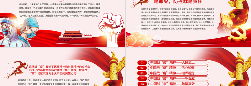 中國戰(zhàn)“疫”精神——人民至上01中國戰(zhàn)“疫”精神——信心如磐02中國戰(zhàn)“疫”精神——指揮若定03中國戰(zhàn)“疫”精神——一呼百應(yīng)04中國戰(zhàn)“疫”精神——敏捷高效05中國戰(zhàn)“疫”精神——逆行奉獻(xiàn)06中國戰(zhàn)“疫”精神——科學(xué)精準(zhǔn)07中國戰(zhàn)“疫”精神——守望相助08