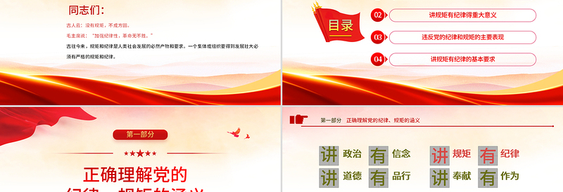 黨員干部要講規(guī)矩有紀(jì)律PPT紅色大氣2022年黨支部專題廉政教育專題黨課課件模板