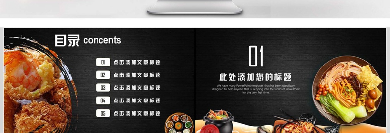 簡潔大氣美食餐飲酒店策劃PPT模板 Array