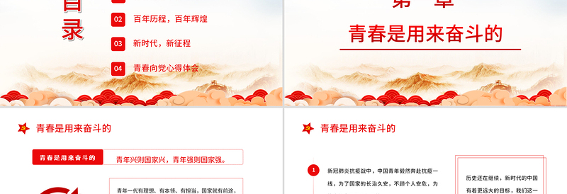 青春向黨奮斗強(qiáng)國PPT簡(jiǎn)潔黨建風(fēng)青春是用來奮斗的青年學(xué)生愛國主義教育宣教模板 青春向黨 青春向黨奮斗強(qiáng)國 不忘初心青春向黨 青春心向黨 青春心向黨建功新時(shí)代 團(tuán)課 青春心向黨主題 青春與夢(mèng)想 青春向黨時(shí)代向上 黨建黨支部 紅色喜慶大氣 紅色歷史 少年先鋒隊(duì) 青春 青少年 點(diǎn)贊青春 五四青年節(jié) 少先隊(duì)員團(tuán)日活動(dòng) 黨員入黨 學(xué)生會(huì)競(jìng)選 Array