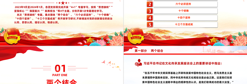 思想旗幟主題團課PPT黨建風(fēng)團員和青年主題教育4+1專題理論學(xué)習(xí)團課下載