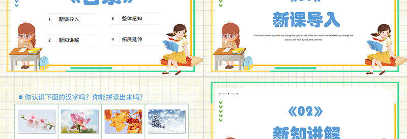 《01》新課導入Click here to enter your text and change the color or size of the text. Insert the data text icon, change the picture, and have a good time.contents