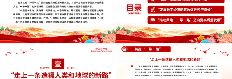 共建“一帶一路”P(pán)PT大氣簡(jiǎn)潔促進(jìn)綠色發(fā)展推動(dòng)科技創(chuàng)新專題課件 Array