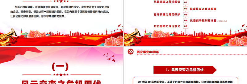 西安事變88周年P(guān)PT紅色簡潔銘記歷史傳承紅色基因主題班會 Array