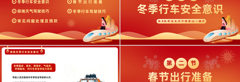 暖心春運(yùn)PPT精美插畫(huà)風(fēng)春節(jié)安全出行平安回家過(guò)新年下載 Array