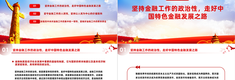 深刻把握金融工作的政治性和人民性PPT紅色簡潔學習教育黨課課件模板 Array