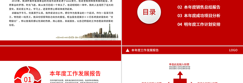 2019年紅色工作總結(jié)銷售工作匯報PPT模板幻燈片