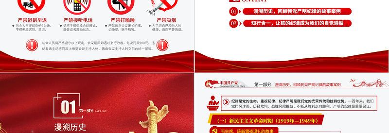 目錄ONTENT知行合一,讓鐵的紀(jì)律成為我們的自覺遵循漫溯歷史,回顧我黨嚴(yán)明紀(jì)律的故事案例